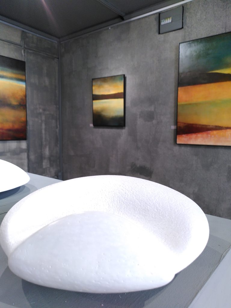 Et dans ses toiles aux couleurs chatoyantes où se mêlent pigments, huile, cire d’abeille, etc, Claire Bolay convie nos yeux à découvrir l’ébauche du paysage ou du mouvement.